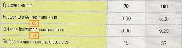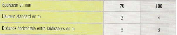 Tableaux des dimensions ou surfaces limites entre éléments raidisseurs