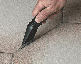 Glisser la pointe du burin entre deux carreaux après avoir gratté le joint de manière à créer un passage de levier.