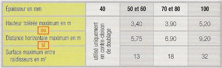 Dans cet exemple, si l’on a une hauteur à cloisonner de 3,40 mètres, on ne pourra dresser la cloison que sur une longueur de 3,80 mètres si l’on n’intercale pas de raidisseur, pour respecter les 13 metres carre de surface maximum entre raidisseurs.